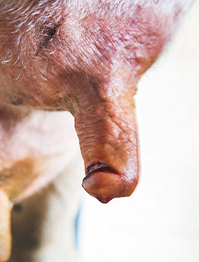| Well since letting down is psychological, it only stands to reason that a cow wouldn't let down into an injured teat. I know that if a woman is going through a lot of emotional trauma or hasn't prepped her tits for the rigors of nursing, she sometimes doesn't let down and her baby can start to starve. I've actually seen that happen, but she was so determined to nurse her baby that her doctor outfitted her with a bag that fit on her back filled with formula and a tube that came down and taped to her breast at her nipple so she could "nurse." Eventually with that set-up she started to let down and the baby started to get her milk. But when she first took her and her baby to the doctor, her baby looked like a starving baby magpie crying all the time. |